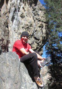 I spent the latter half of October working a route in Clear Creek Canyon called “Primetime to Shine”. This is a linkup of two popular Peter Beal 14a’s, “Primeval” and “Shine”. I’m usually not a big fan of linkups but this one is a rare example of a linkup that actually improves on the piece parts. The Primo Wall is fairly short (maybe 35 feet tall?) and the geometry is such that the ‘straight up’ lines are really only continuous for a little over half the height of the wall. The ‘Primetime’ linkup traverses left and up through the middle of a steep shield of stone, keeping the line hard for a good 30 or so hand moves. The result is one of the most continuous hard lines on the Front Range.