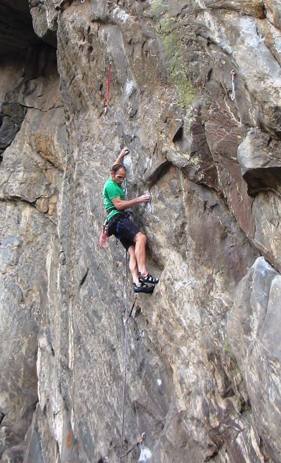 In 2008 I spent two weeks at Smith working and sending To Bolt or Not To Be, perhaps the most technical single-pitch climb in America. My training strategy for that season was pretty unusual, but very effective. I lengthened my Base-Fitness Phase by adding more ARC workouts, and I ordered a bunch of really tiny crimps to add to the Lazy H. I did a standard Strength Phase (but I added a thin, closed-crimp grip to my hangboard routine). After 8 hangboard workouts I immediately transitioned to outdoor climbing 2 days per week (normally I would have a 2-4 week transition period of bouldering and/or campusing). I climbed in the Lazy H a third day each week, doing thin, power-endurance linked bouldering circuits.