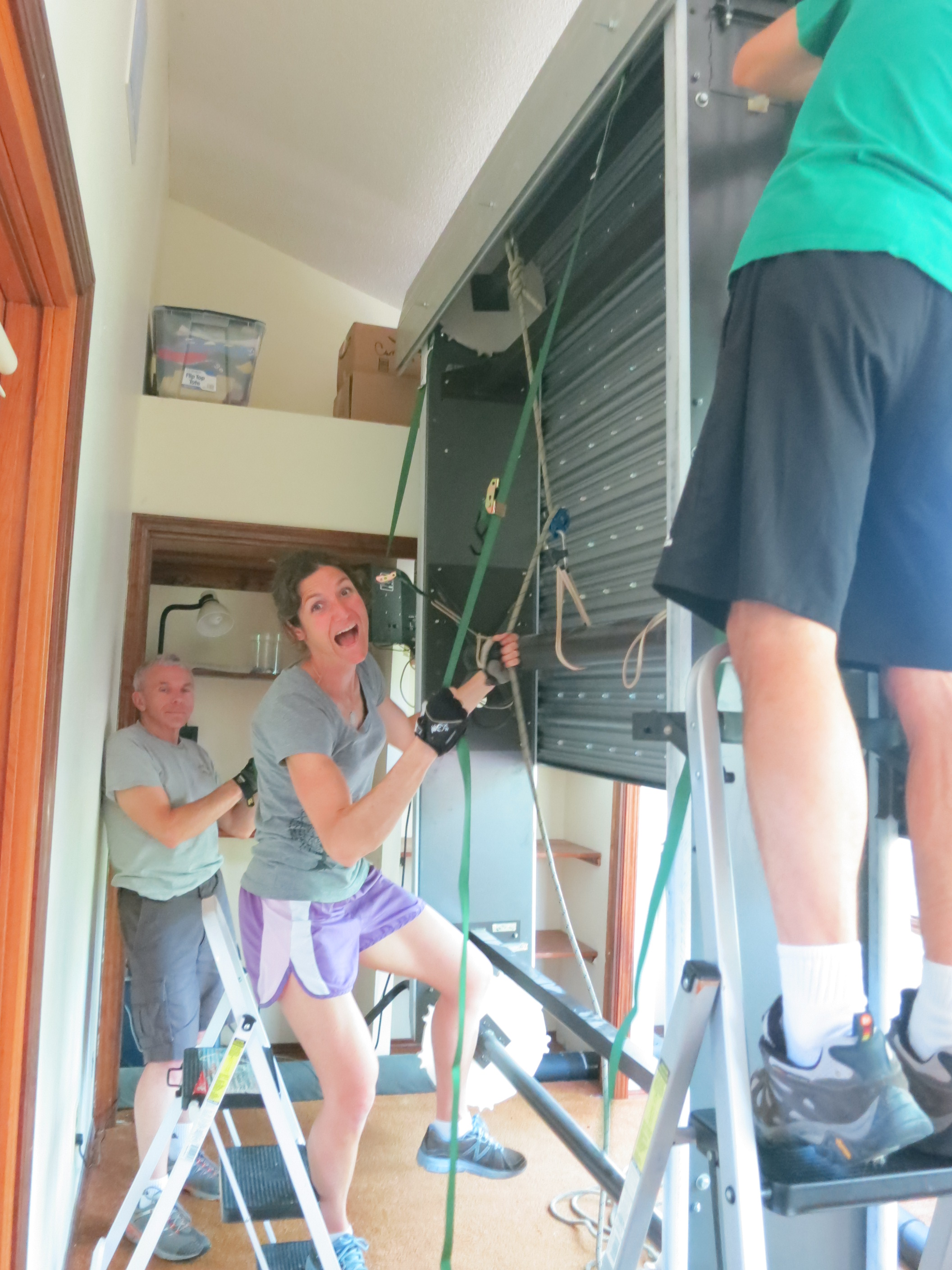 Next, we took down our Ascent “Fun Rock” rotating climbing wall. This was a lifesaver while we lived in Florida, since we had no climbing gym, or space to build our own wall. However, it is a BEAST, and weighs well over a ton (2,000lbs). We are very grateful to my parents, Marshall and Karen for helping us take it down and pack it up (along with much of our other household wares):