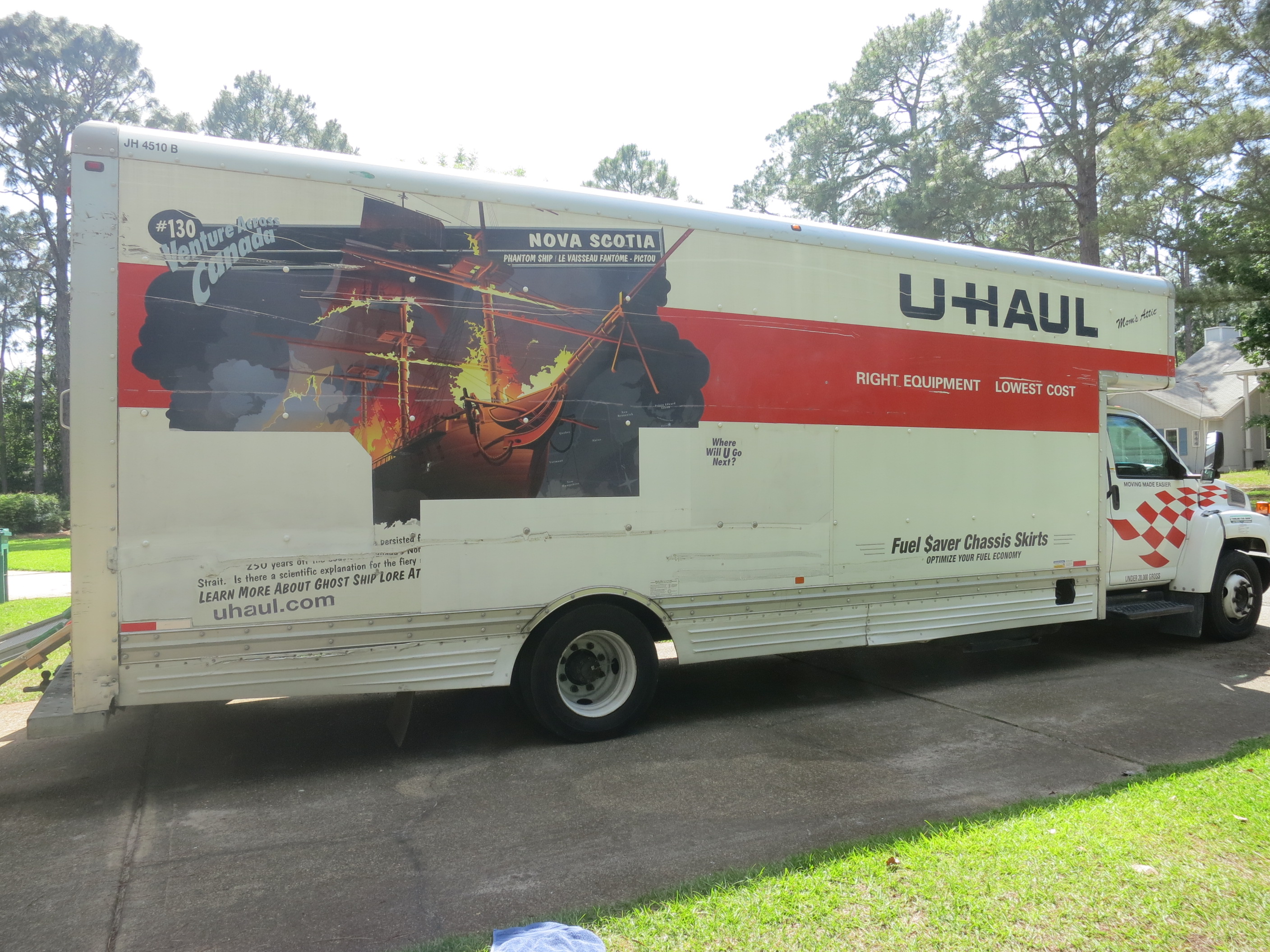 We rented a 26′ U Haul moving truck to pack up our various climbing walls and training gear. Oh yeah, we had some furniture and other stuff too….