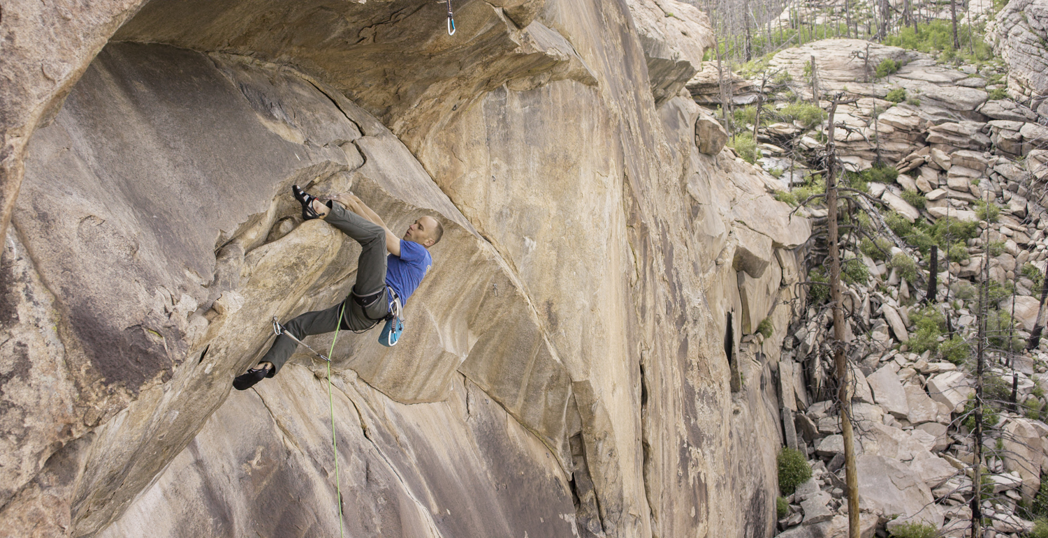 In an article a few weeks ago (Thunder Strike – Part I), I unveiled a couple new routes I established last spring at Thunder Ridge, Colorado’s premier granite crag (IMHO). As soon as I made the first redpoint of Game of Drones, I went directly to the next on the list; an unfinished route ominously listed in the guide as “Kevin’s Mega Project“. This was a commanding line taking a fairly direct path up the center of the tallest and most imposing face at Thunder Ridge.