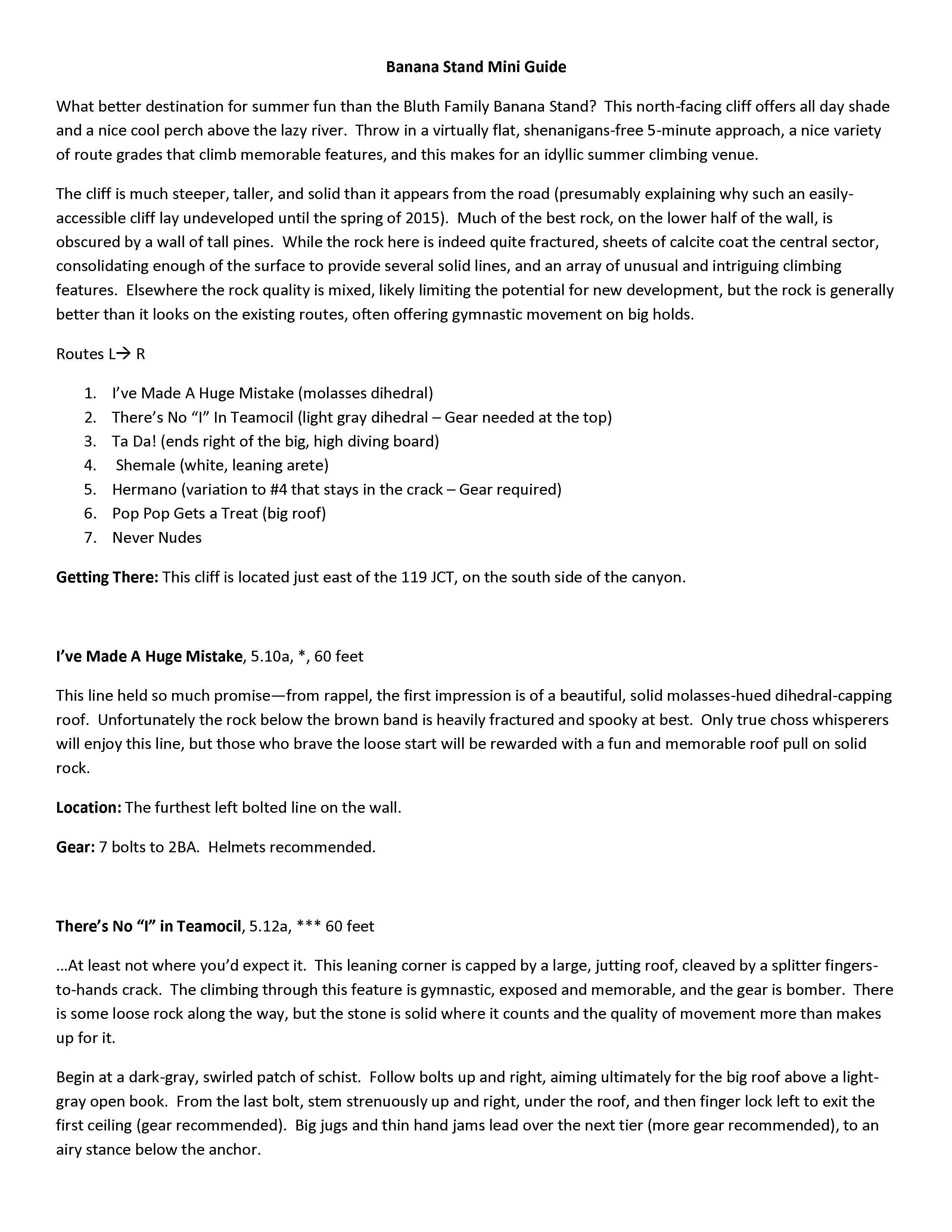 Finally, below is a mini-guide to a new Clear Creek crag I developed a while back called “The Banana Stand.” I was waiting to share this information until construction on the Peaks-To-Plains bike trail was completed (since the construction traffic makes the approach much more difficult), but with the new bolting rules I think it’s best to publish it now.  Some Banana Stand action shots can be found here.