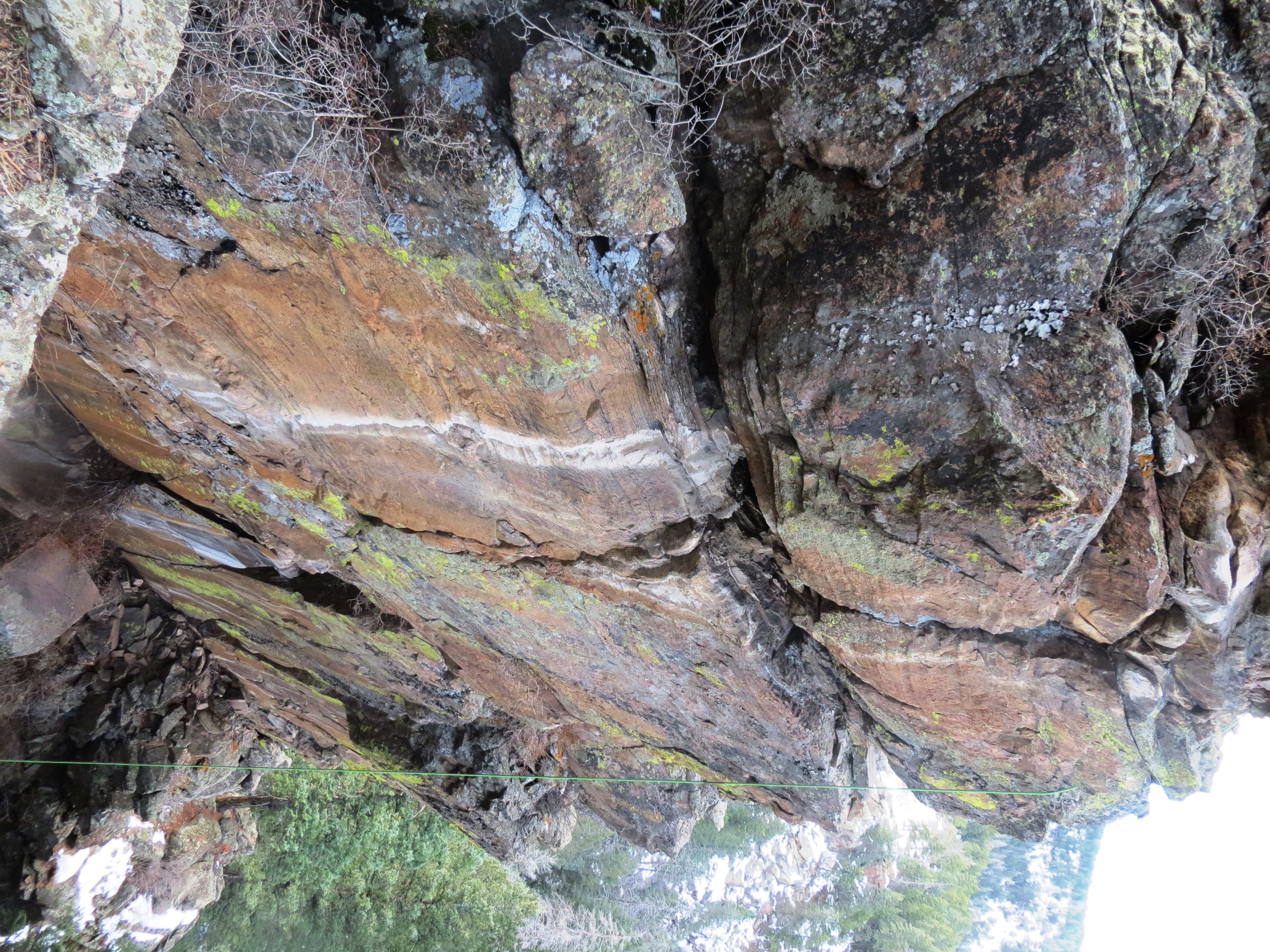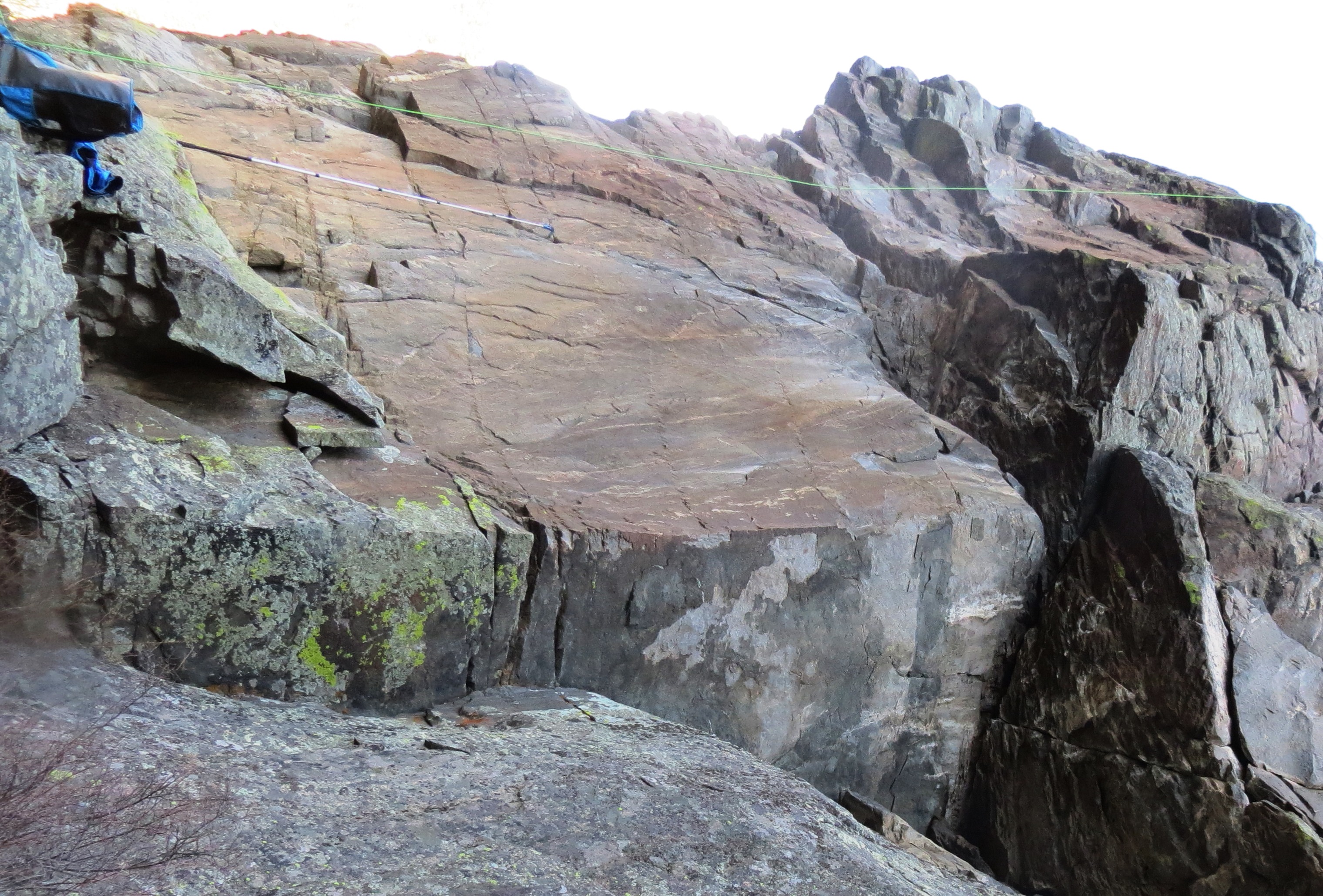 Another cliff, this one composed of bullet-hard quartzite. The leaning arete left of center will easily be in the 5.14-range, and to the right of that are five more lines that I would guess will range from 5.8 to 5.12.