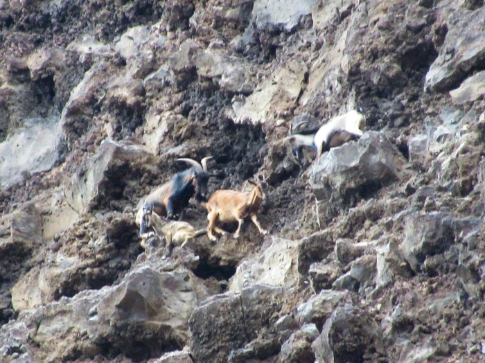 The hike flew by as Jeff excitedly pointed out various boulder problems and aped crux sequences. The narrow canyon was lined with bullet basalt and stacked with Jeff’s inventive problems, from obvious classics on free-standing blocks, to hundred-foot traverses and even a 30-foot roof crack. A raucous heard of feral mountain goats observed our march from above, and provided questionable entertainment throughout the evening, complete with loud farting noises and a high-speed demonstration of their procreation methods.
