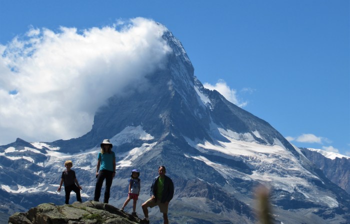 We hiked below the legendary Eiger Nordwand and around the northeast flank of the Matterhorn. We enjoyed incredible sunshine and torrential rain, rode more cable cars than I can count, and stumbled upon fields of wild strawberries.
